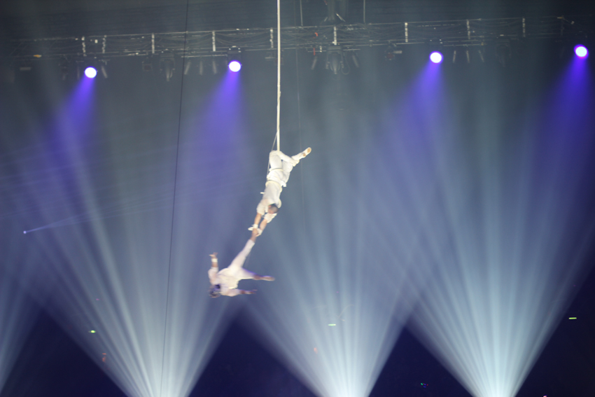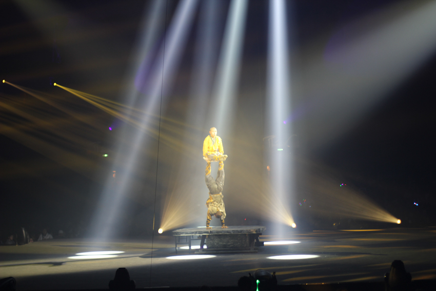 En dehors de ce début qui présentait de fausses scènes de combats, et qui peuvent être un peu impressionnantes pour un tout petit de 3/4 ans, tout le reste du spectacle est vraiment super, avec des numéros extrêmement variés et impressionnants, et l’histoire est facile à suivre.
