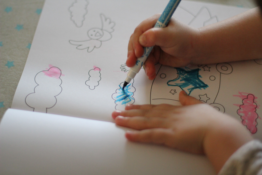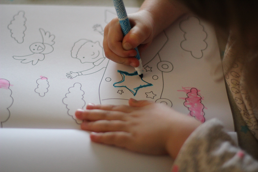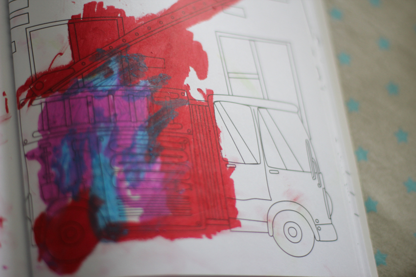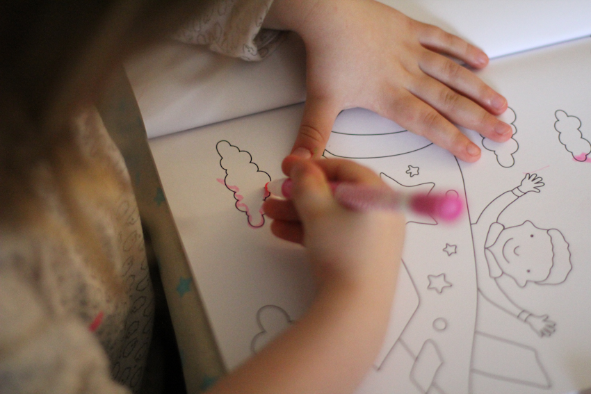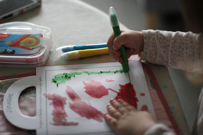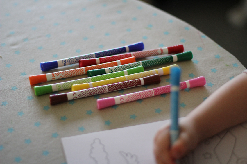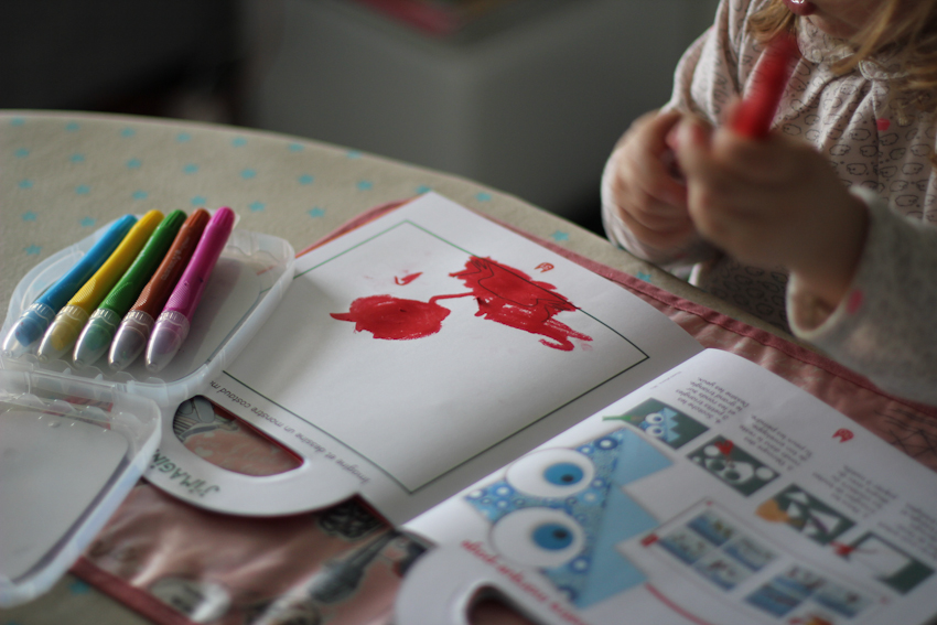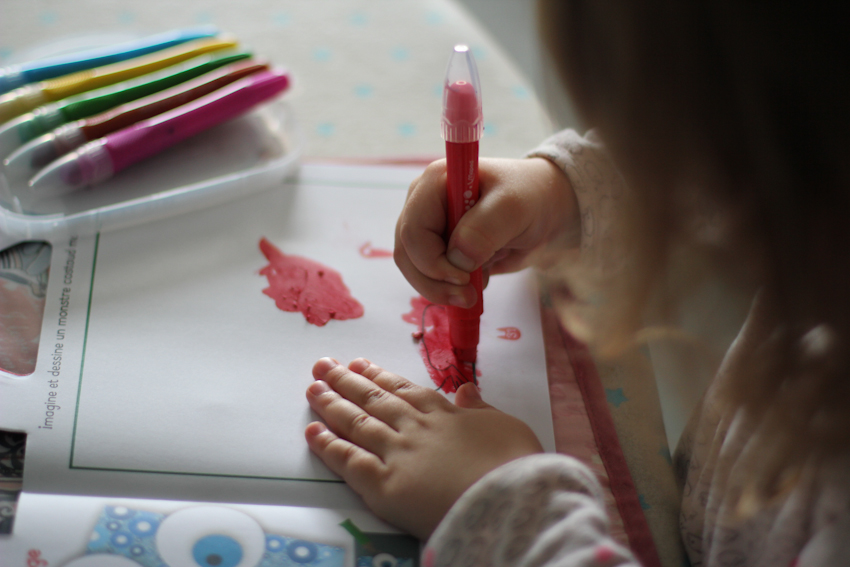 L’autre avantage évident de ce format c’est que les enfants n’ont pas besoin de s’en mettre plein les mains pour dessiner. Et même si ça arrive, ça se lave vraiment très bien avec de l’eau et du savon doux.