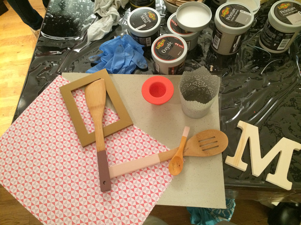 J’ai vraiment bien aimé cet atelier qui m’a permis de retoucher à de la peinture, mais pour autre chose que pour repeindre mes murs !