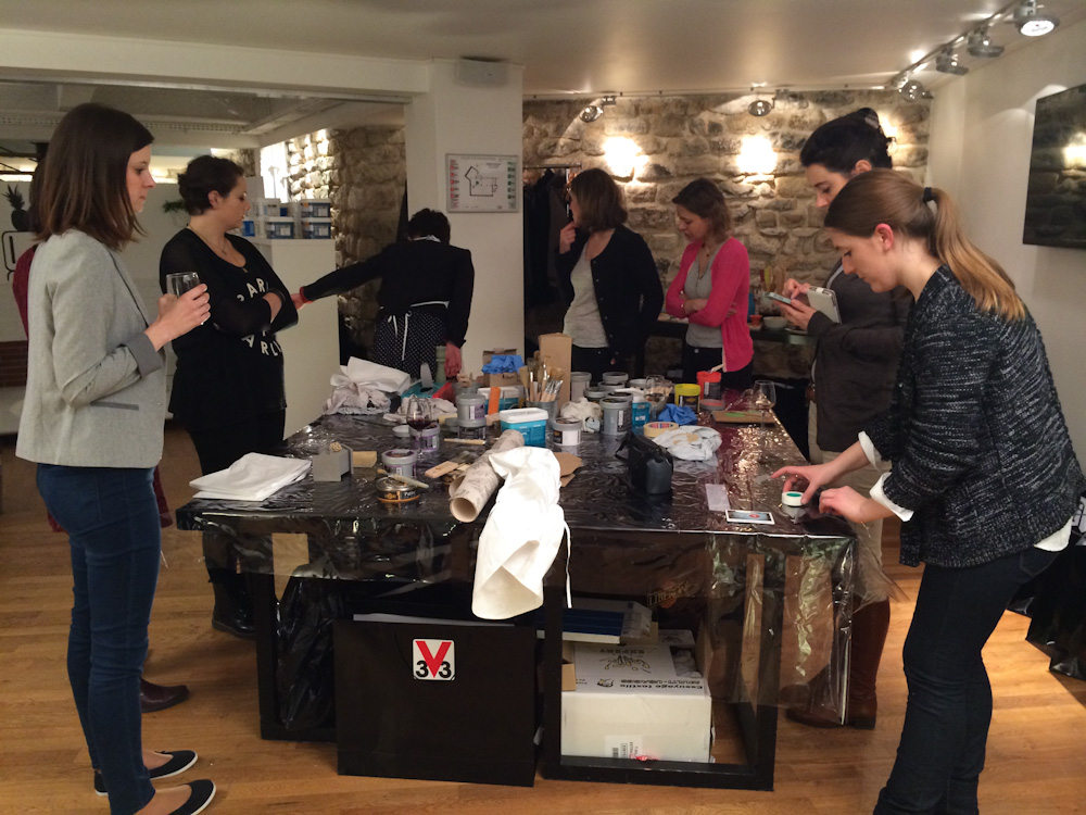 Nous avons ensuite pu participer à un atelier de création de Moodboard à l’aide de petits objets mis à notre disposition et que nous pouvions customiser à l’aide des peintures V3V et Libéron.
