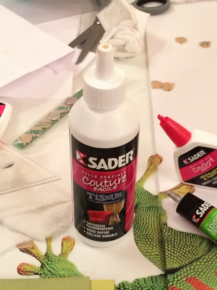 Ayant la peau aussi blanche de quelqu’un venant du grand nord (pas complètement faux en passant), je prévois systématiquement l’été un « baume pansement » après coup de soleil. Après avoir testé et approuvé depuis quelques années le baume de secours cellulaire des laboratoires Vichy et le baume pansement de Lierac, que je trouve vraiment très bien, j’ai hate de pouvoir tester celle-ci que je trouve à priori plus riche et plus fraiche après application. Elle peut également servir de crème hydratante et prolongateur de bronzage une fois rentrés de vacances. Le seul bémol, le couvercle et le système de fermeture qui m’a l’air un peu léger. - La colle pour tissus et la glue universelle Sader, découverte au cours de l’atelier de création de pochette en simili cuir DIY.